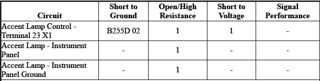 The BCM detects a short to ground in the accent lamp control circuit terminal