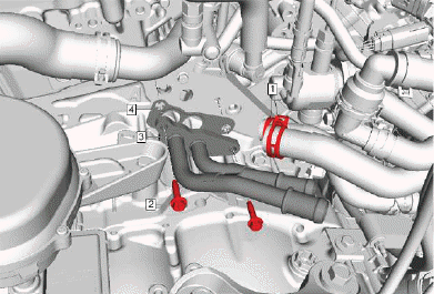 Remove the thermostat bypass hose (2) from the water outlet (3).