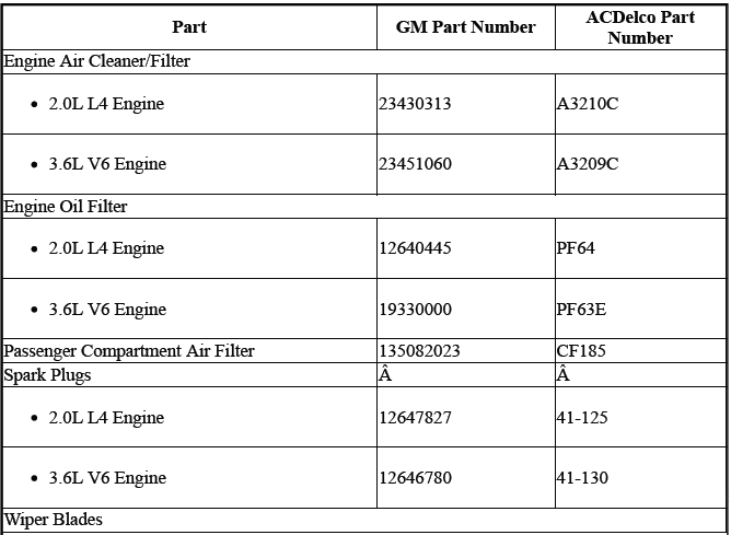 Replacement parts identified below by name, part number, or specification can be obtained from your dealer.