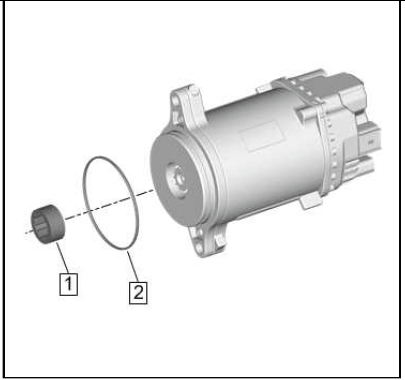 2. After the power steering assist motor seal (2) is placed on the power steering assist motor, apply a thin layer of grease to the seal.