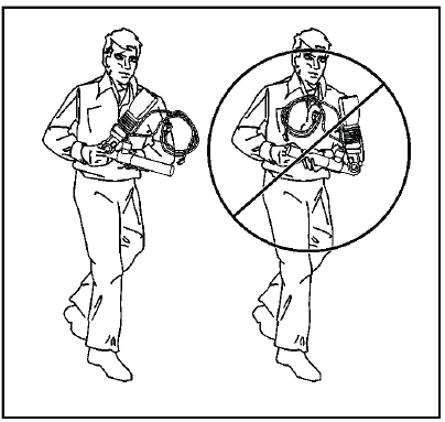 5. When carrying a pretensioner to the deployment area keep the open end of pretensioner pointed away from the body.