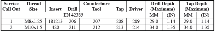 NOTE: All fasteners/components listed in this table MUST BE DISCARDED and replaced with NEW after removal.