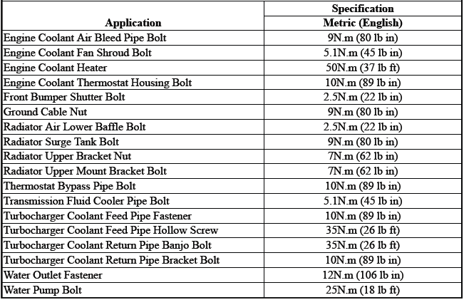 FASTENER SPECIFICATIONS (2.0L LTG)