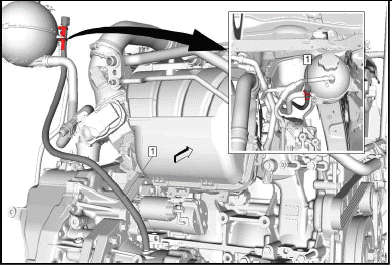 Connect the power transfer unit vent hose assembly (1) to the radiator surge tank assembly.